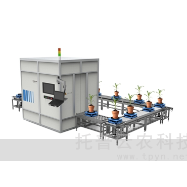 溫室型高通量植物表型采集分析平臺(tái)平臺(tái)采用流水線傳送形式,將植物傳送至成像暗室進(jìn)行成像和解析,通過植物-傳感器-解析的工作模式高效實(shí)現(xiàn)了對(duì)盆栽植株進(jìn)行表型采集與解析。