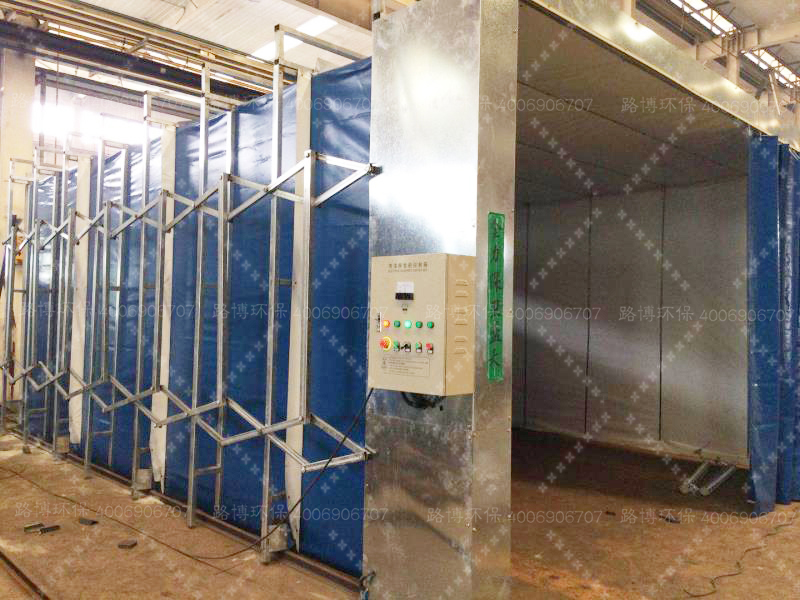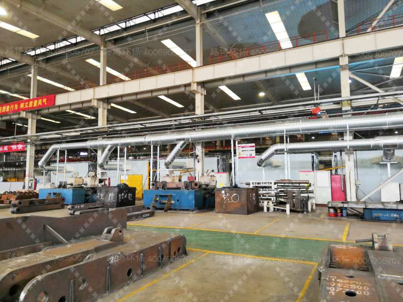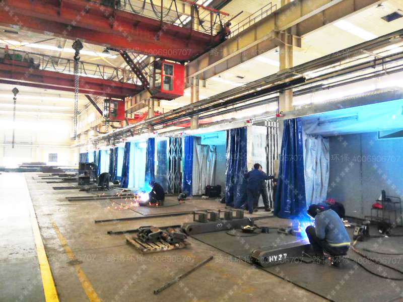 近幾年,機械制造行業(yè)在市場需求的推動下整體保持持續(xù)增長態(tài)勢,西安某知名煤礦機械有限公司是以機械制造加工為主的綜合性煤礦機械企業(yè),煙氣粉塵的主要來源于車間焊接煙氣粉塵的車間排放,車間需除塵區(qū)域共1跨5柱距(柱距9米)內(nèi)且煙氣粉塵量較大,青島路博環(huán)保結(jié)合用戶現(xiàn)場工況及需求將除塵區(qū)域設(shè)計劃分為7個工位,每個工位單獨采用一套伸縮房(7m*5m*3m)機構(gòu)對煙塵進行收集。