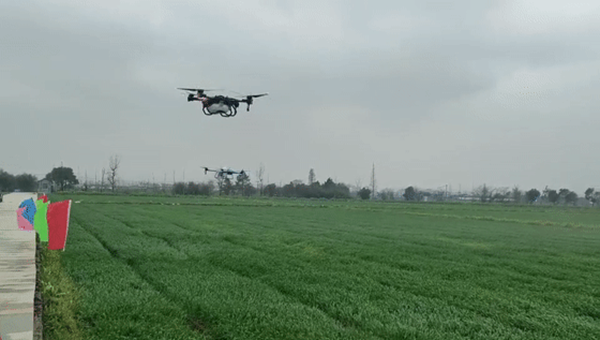 大田周邊科學(xué)排布的太陽能風(fēng)吸式殺蟲燈,利用物理防治的方式可實(shí)現(xiàn)對蟲害的無毒無害滅殺,有效維護(hù)田間種植環(huán)境。一旦發(fā)生重大病蟲害,還可啟用無人機(jī)大規(guī)模噴灑農(nóng)藥,一臺無人機(jī)一天就能打300-400畝地,科學(xué)精準(zhǔn)施藥,能夠有效防治蟲害,保障穩(wěn)糧穩(wěn)產(chǎn)。