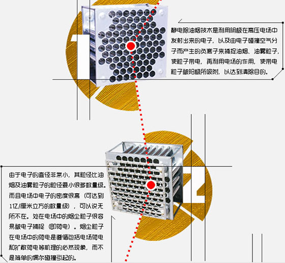 ?? 1、?油煙凈化器的電場(chǎng)使用圓筒蜂窩式結(jié)構(gòu),使靜電場(chǎng)能均勻地達(dá)到很大的平均電場(chǎng)強(qiáng)度,極大的增加了電場(chǎng)凈化面積,使電場(chǎng)與油煙粒子結(jié)合作用的時(shí)間更長(zhǎng),從而決定了設(shè)備具有極高的除油煙效率。?