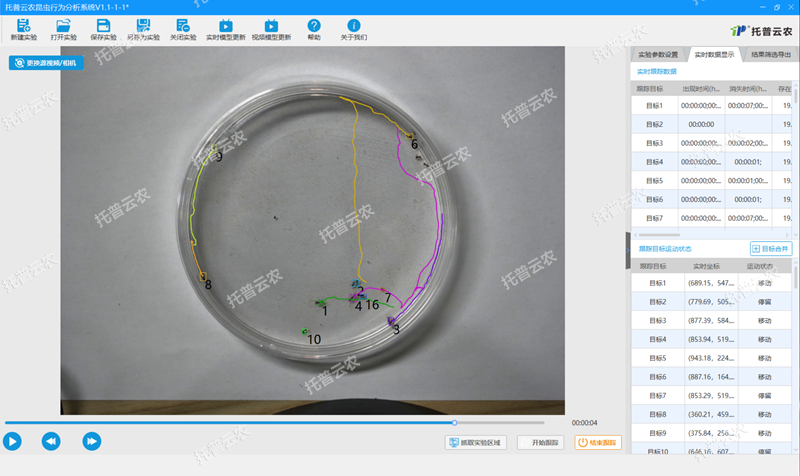 11.實驗結(jié)果數(shù)字化:自動計算得出目標(biāo)昆蟲運動過程的相關(guān)運動參數(shù),以數(shù)字?jǐn)?shù)據(jù)的形式呈現(xiàn),便于定量分析。