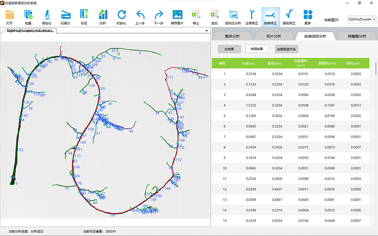 根系連接分析參數(shù):分支角度、連接數(shù)量、各段詳細(xì)參數(shù)等